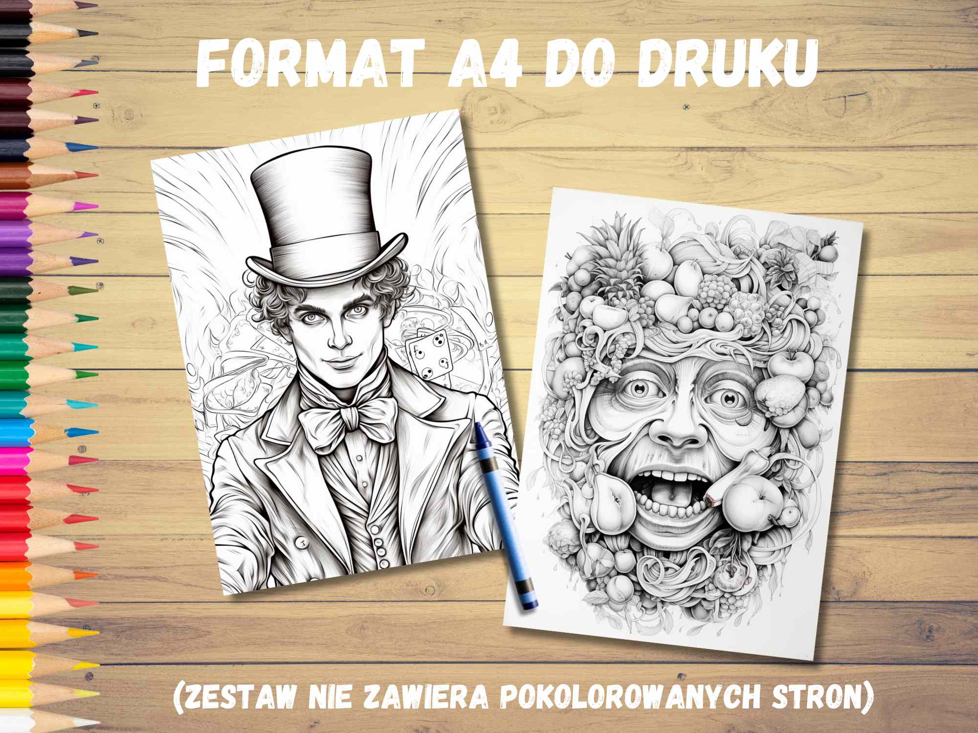 Jedyne co nas ogranicza to podobno wyobraźnia. Kupując naszą kolorowankę przeniesiesz się fantastyczny świat, który zamieszkują niezwykli ludzie. W kolorowance znajdziesz 20 dziwnych, niepokojących, ale też wywołujących pozytywne emocje postaci. Jeśli lubisz nieoczywiste połączenia i obrazy, które wykraczają poza schematy standardowego myślenia, ten produkt jest właśnie dla Ciebie. Kolorowanka jest przeznaczona dla osób dorosłych.